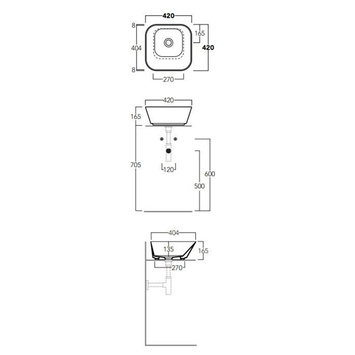 —Раковина из сантехнического фаянса Simas Wave WA03 bi*0 40х40 накладная цвет белый без отверстий под смеситель