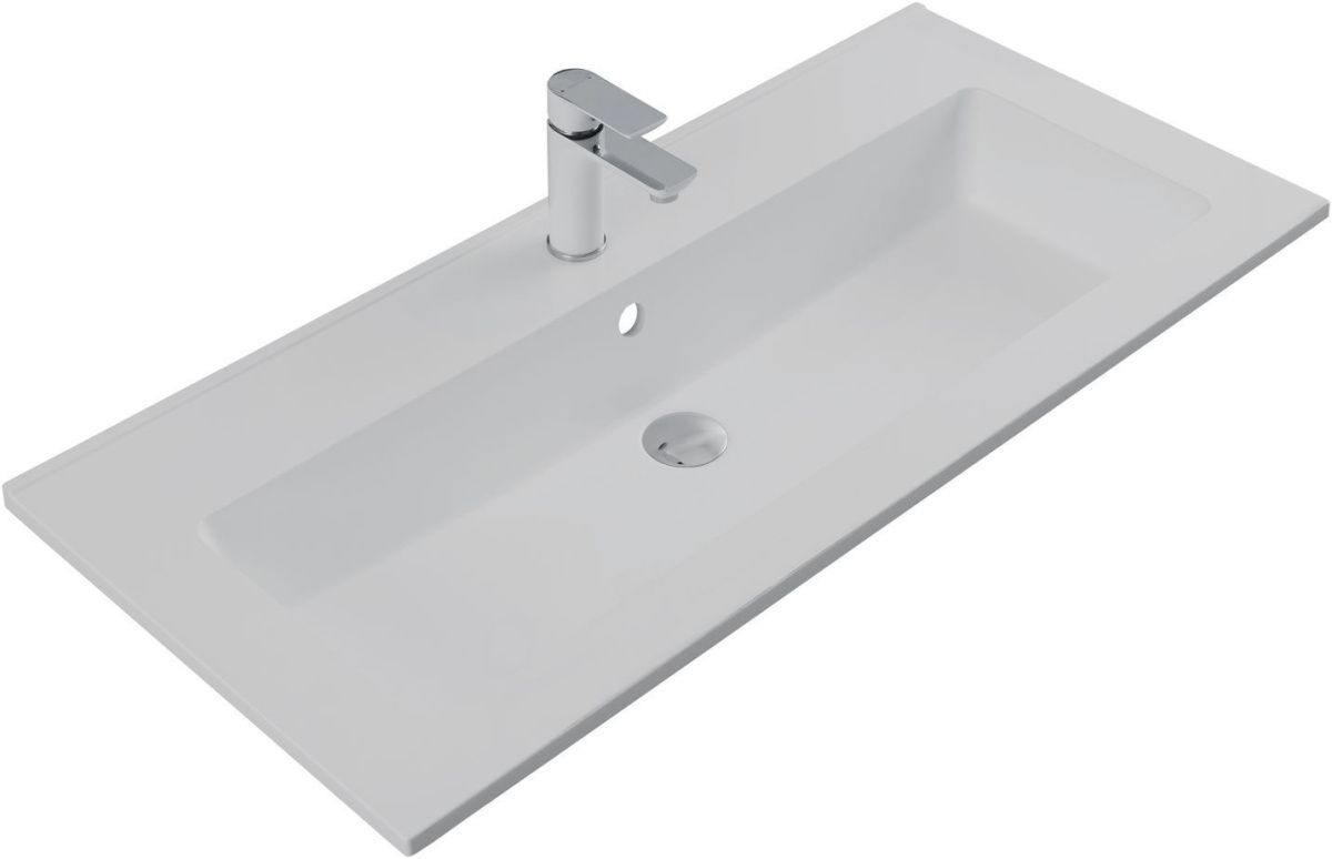 —Раковина из искусственного камня Aquanet Текла 00328016 100х50 полувстраиваемая цвет белый 1 отверстие под смеситель