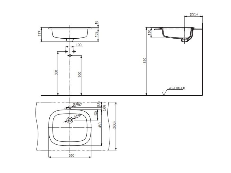 Раковина полувстраиваемая TOTO PUBLIC LW763Y 530мм, без отверстия под смеситель,с переливом. Размеры: 53х45х17.7 см, цвет белый.Технология CEFIONTECT.