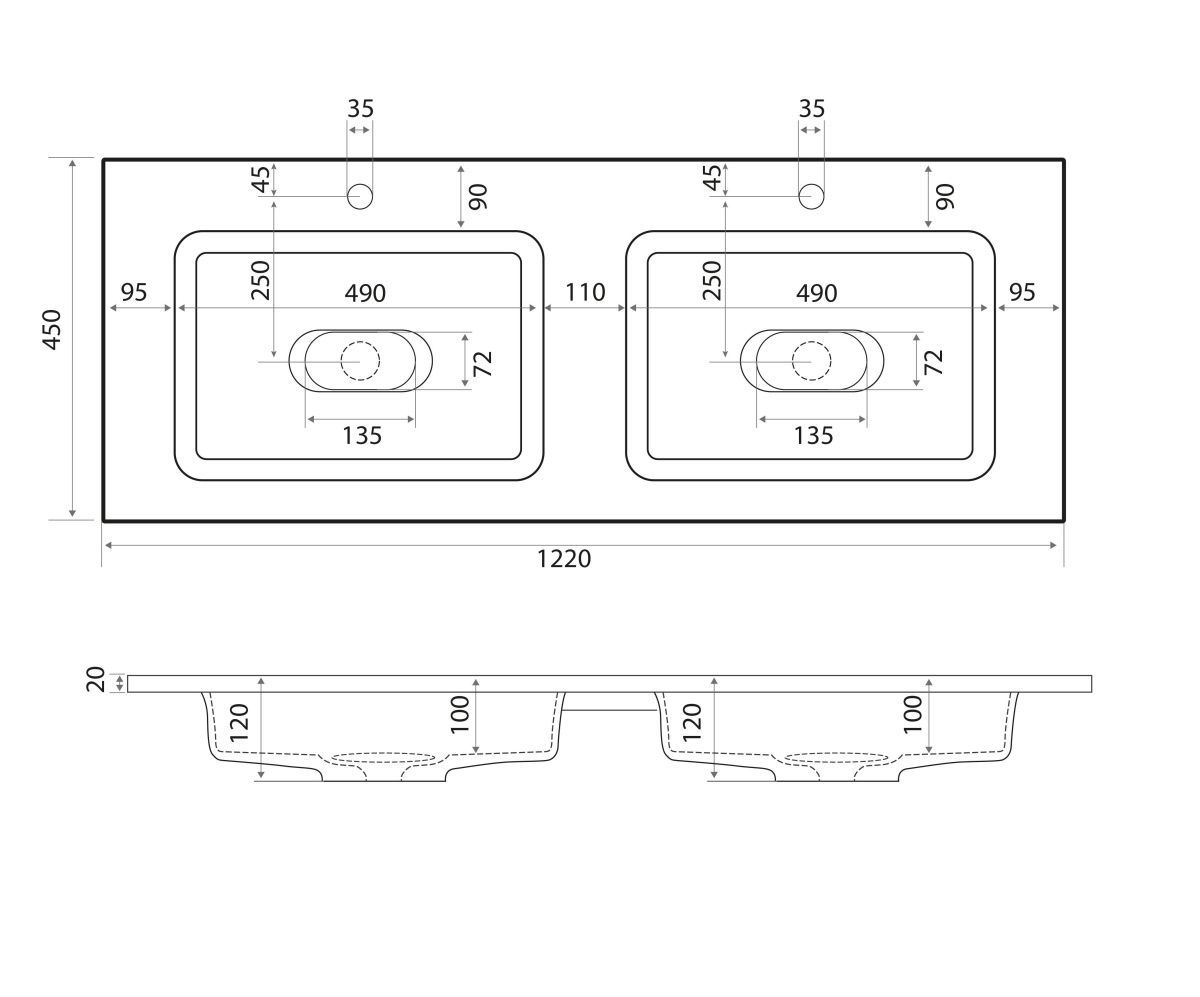—Раковина из искусственного камня Uperwood Modul 2911020342 110х50 полувстраиваемая цвет белый