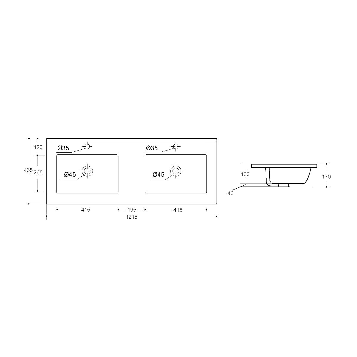 —Раковина из сантехнического фарфора Vincea VBS-13120D 120х50 встраиваемая цвет белый 2 отверстия под смеситель
