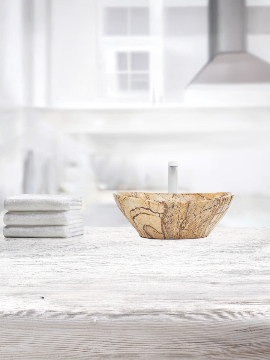 —Раковина из сантехнического фаянса WeltWasser WW SK 10000004552 30 см накладная цвет бежевый/коричневый без отверстий под смеситель