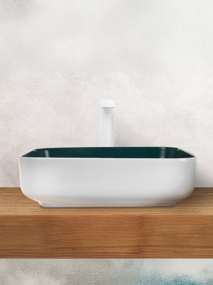 —Раковина из сантехнического фаянса WeltWasser WW SK 10000005602 40 см накладная цвет белый/зеленый без отверстий под смеситель