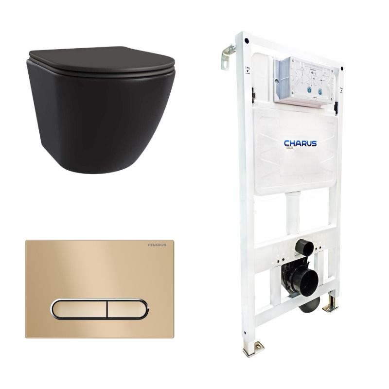 Сет унитаз + инсталляция + кнопка CC.300.80.01+FP.340.51.01+AM25010 Nero