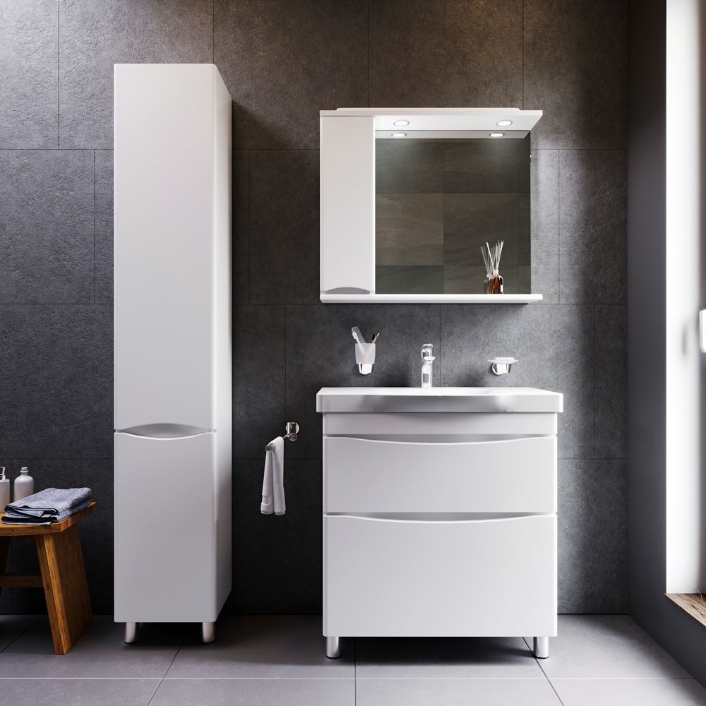 Утонченность в деталях: удобные интегрированные в фасад ручки идеально повторяют изгиб выступа раковины.