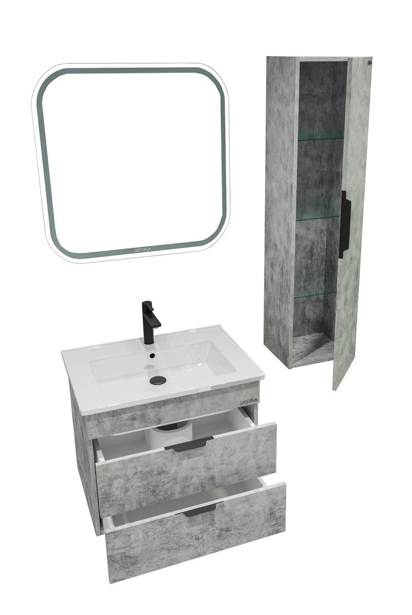 Внутреннее пространство пенала поделено полками на 4 секции, удобное для хранения различных предметов. Дверь снабжена мезанихмом плавного закрывания и укомплектована черной металлической матовой ручкой.