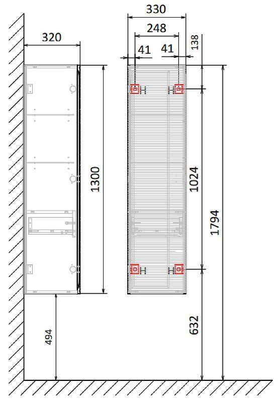 —Шкаф-пенал Jorno KARAT Kar.04.130/P/W 30х130 подвесной цвет белый
