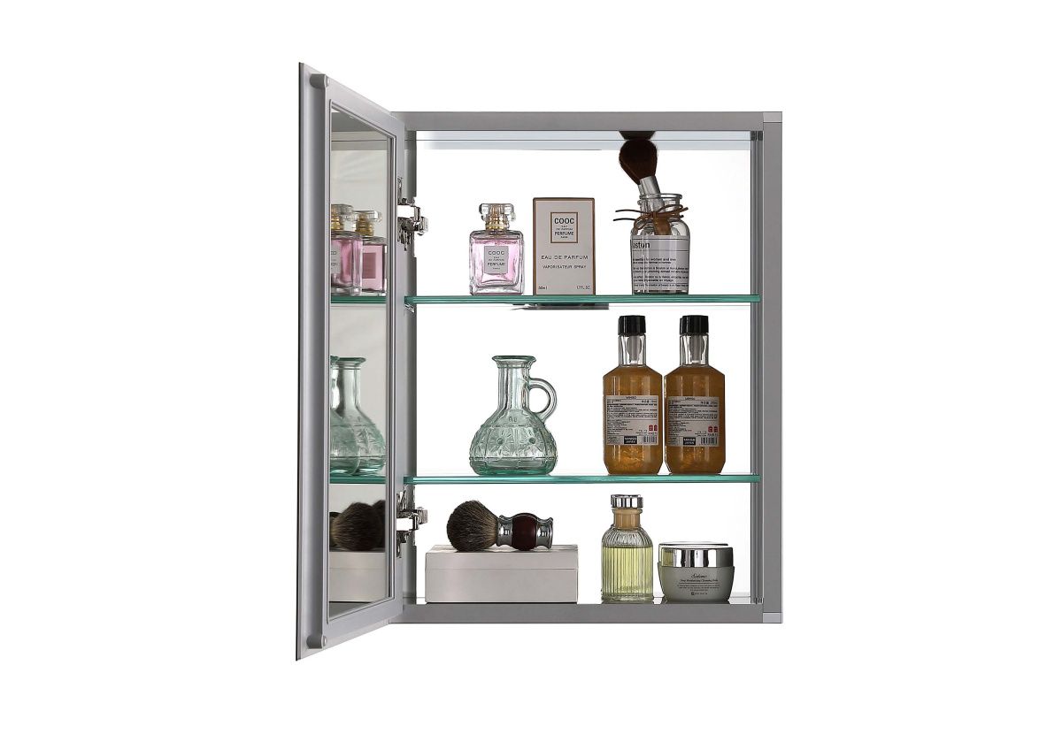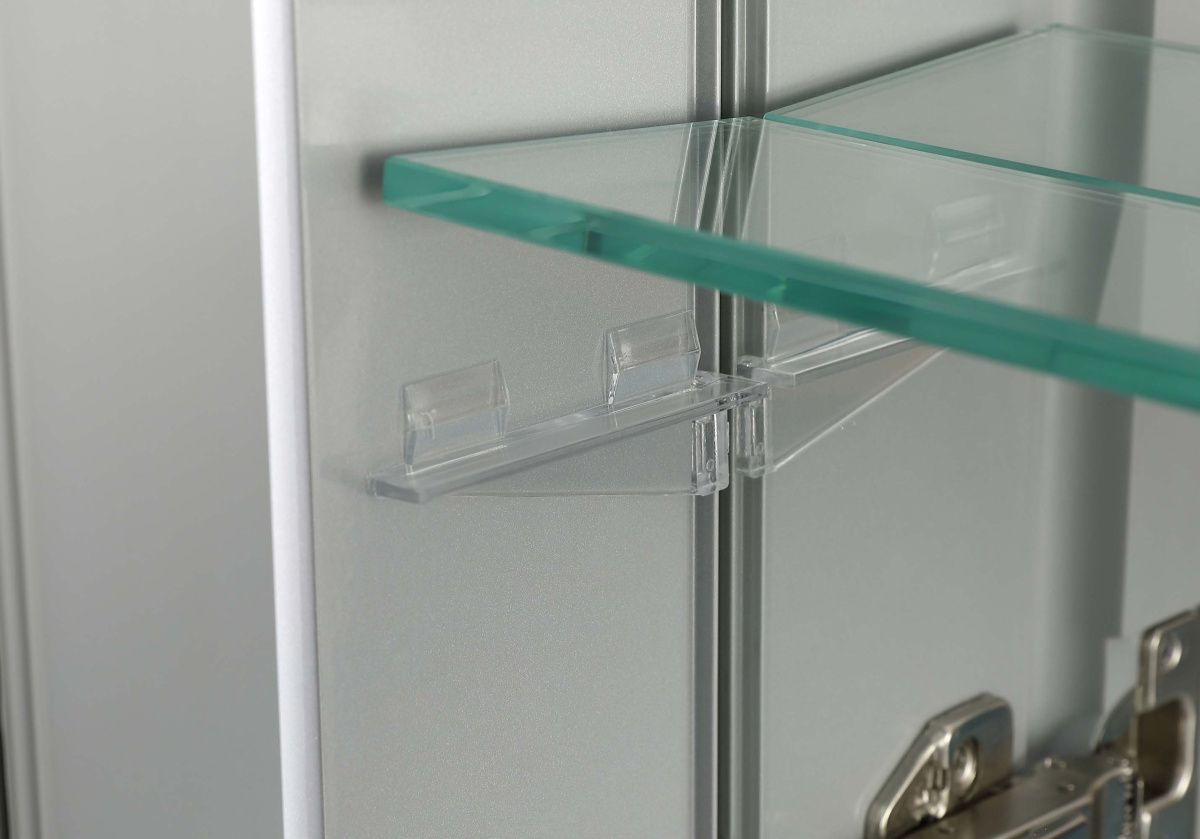 Зеркальный шкаф оснащен практичными полочками, которые позволяют организовать хранение различных предметов — от косметики до банных принадлежностей. Пространство внутри шкафа можно легко настроить под свои нужды, благодаря регулируемым полкам.