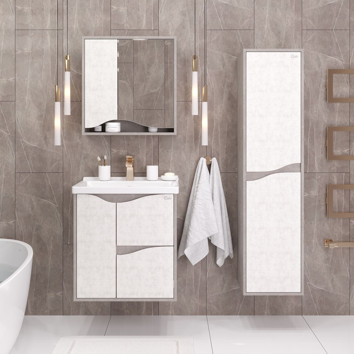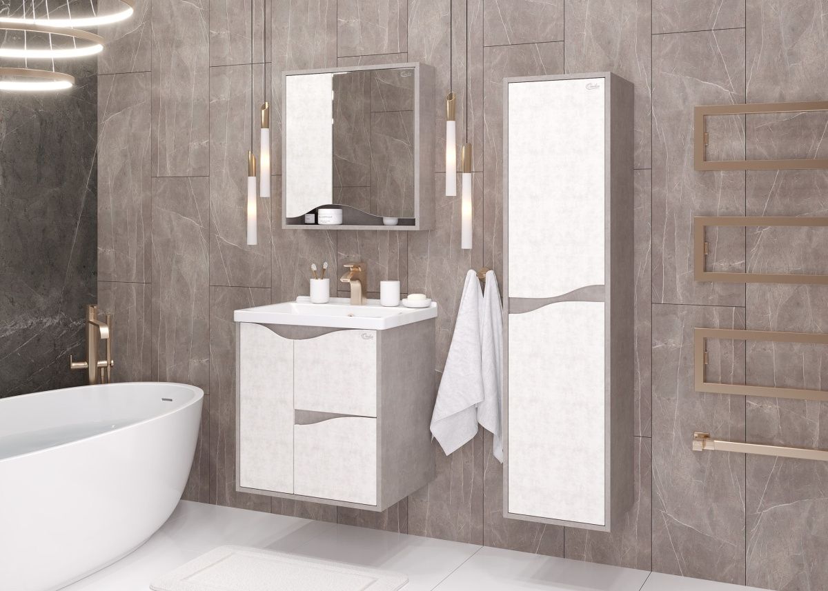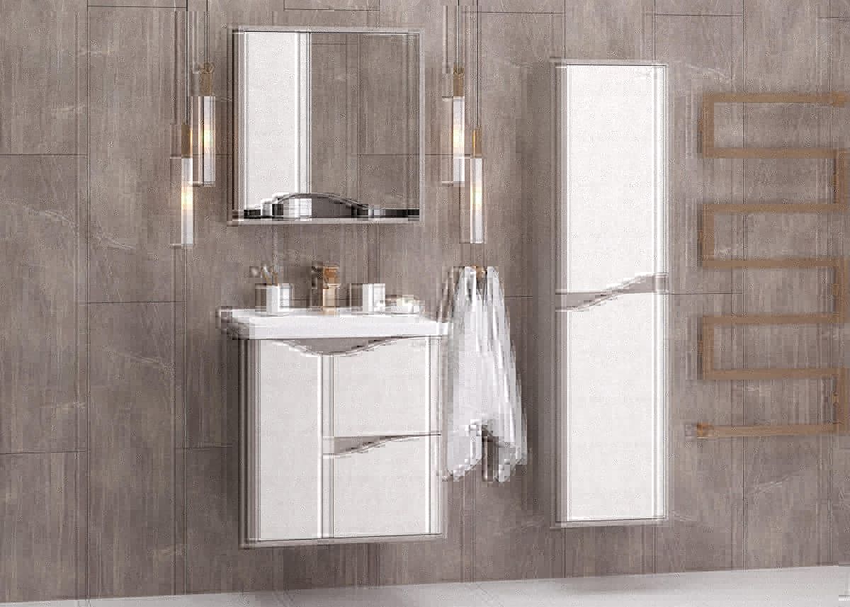 Корпус шкафа-зеркала выполнен из ЛДСП, фасад - из ЛДСП и ЛМДФ в пленке, устойчивых к механическим воздействиям, перепадам температур и высокой влажности.