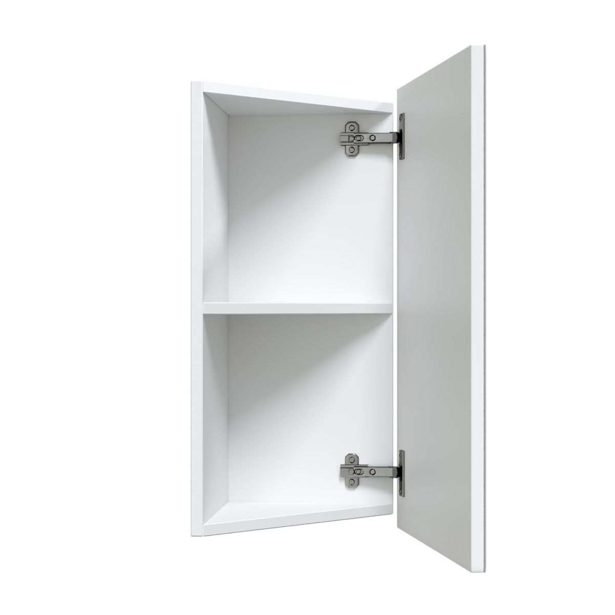 Занимая минимум места в ванной комнате, шкаф позаботится о хранении необходимых мелочей: за простой зеркальной дверцей без декора скрывается просторная зона, разделенная горизонтальной полочкой.