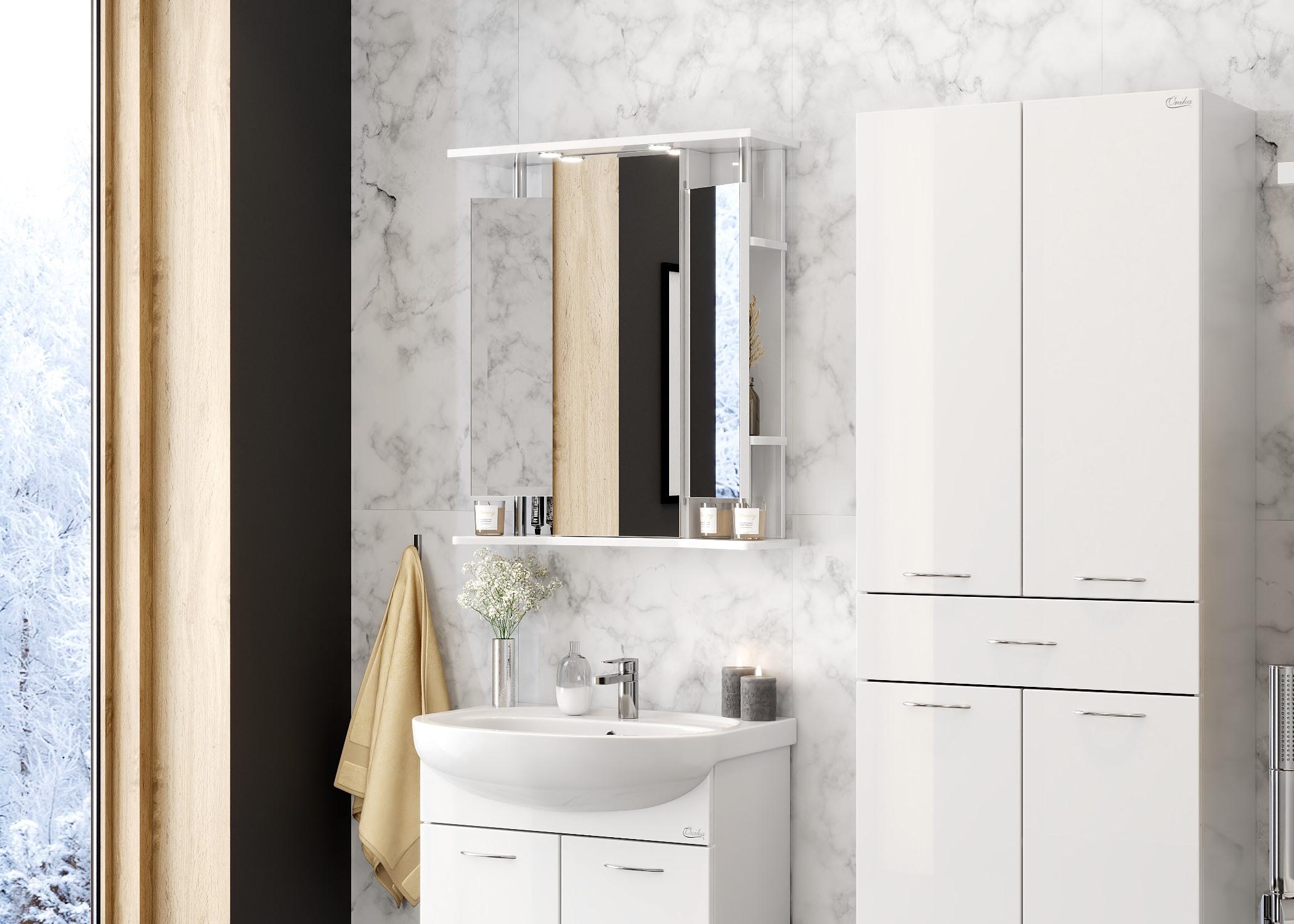 Шкаф-зеркало выполнен из надежной ЛМДФ в пленке, устойчивой к механическим воздействиям, перепадам температур и высокой влажности.