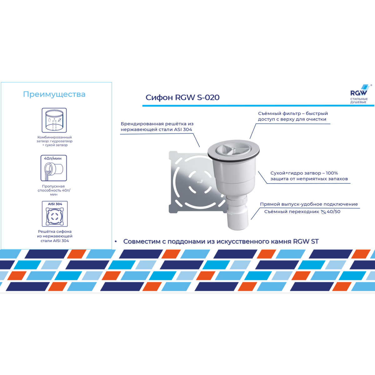 —Сифон для душевого поддона RGW 502402000-01