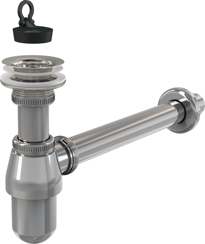 Комплект цельнометаллического сифона и сливного клапана раковины