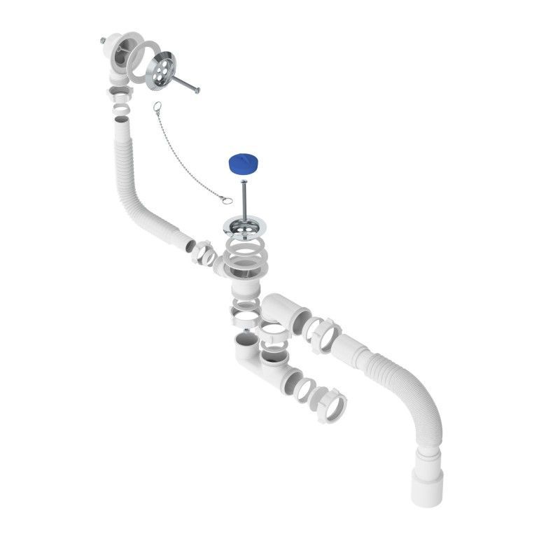 Артикул идет в комплекте с гофротрубой с универсальным выходом в канализацию 40х40/50 мм. и прокладкой-бабочкой из термоэластопласта (ТЭП), который не вступает в реакцию в акриловыми ваннами.