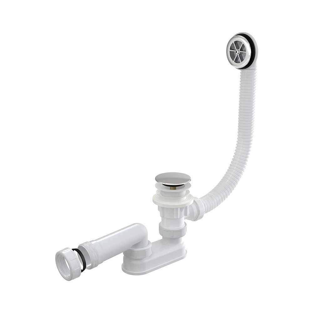 Корпус сифона с системой перелива Хромированная пластиковая решетка перелива Пробка из хромированного пластика Донный клапан из хромированного пластика Гидрозатвор сифона из полипропилена, сваренный ультразвуковым методом, устойчив к термическим и химическим воздействиям Монтажный набор Профильное уплотнение