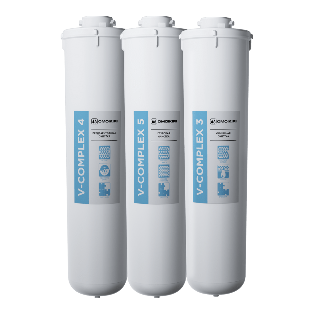 V-Complex 5. Глубокая очистка. Изготовлен по технологии карбонблок с волокном с использованием мелкодисперсного активированного кокосового угля. Благодаря плотной структуре эффективно удаляет из воды органические примеси и активный хлор. Отфильтровывает частицы размером до 3 микрон. Ионообменные нити Vivalon с модифицированными селективными хелатными группами глубоко и необратимо очищает воду от тяжёлых металлов. Содержит серебро в активной ионной форме.
