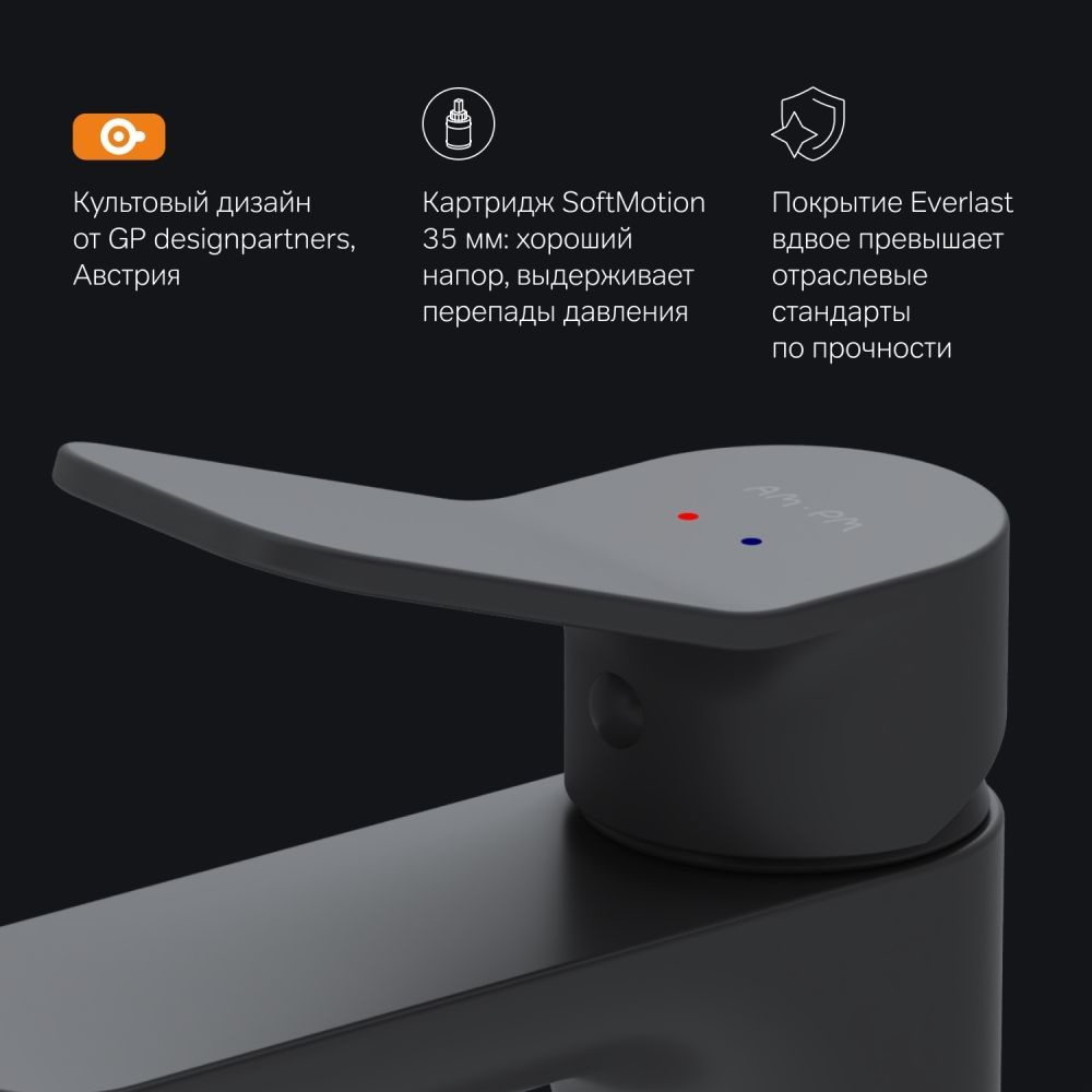 Смеситель X-Joy оборудован специально спроектированным для AM.PM керамическим картриджем SoftMotion 35 мм который обеспечивает оптимальную регулировку температуры а также позволяет выдерживать любые перепады давления.