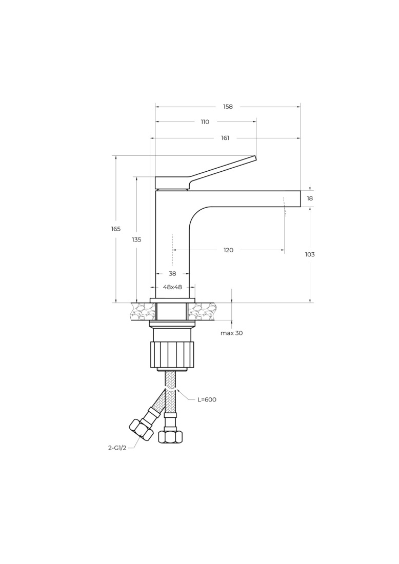 • Гибкая подводка из нержавеющей стали G1/2 длиной 600 мм
