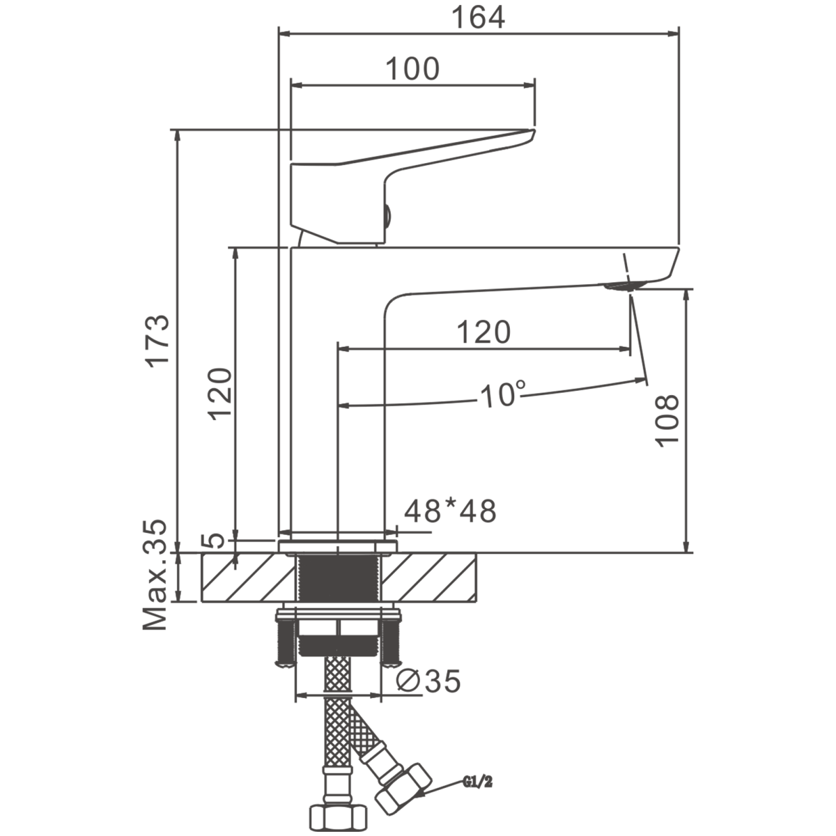 Высота излива, см