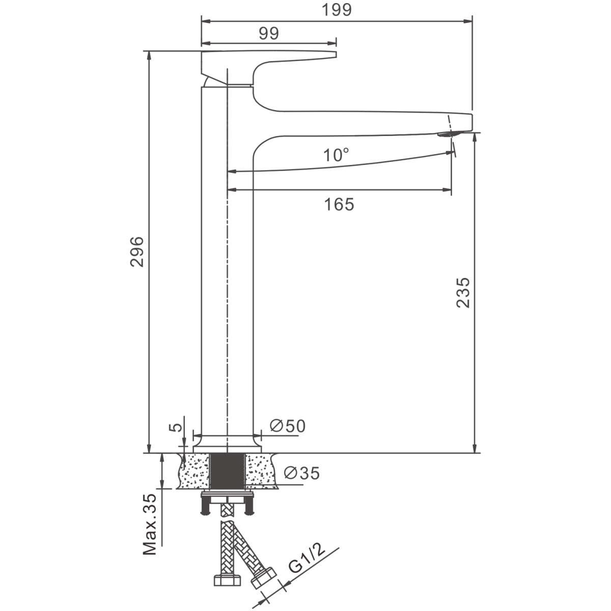 Высота излива, см