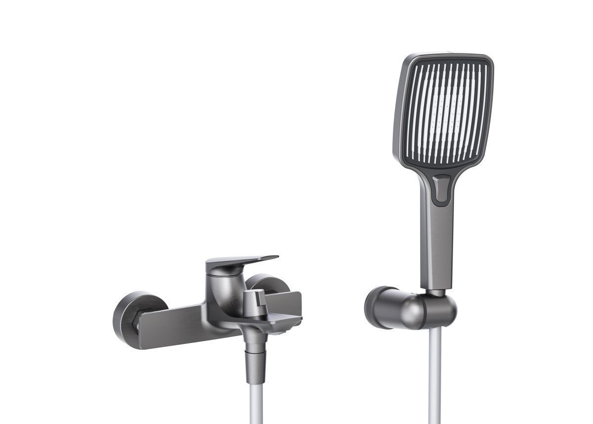 •В комплекте со смесителем: 3-х режимная душевая лейка из ABS-пластика, душевой шланг PVC 150 см, поворотный держатель душевой лейки