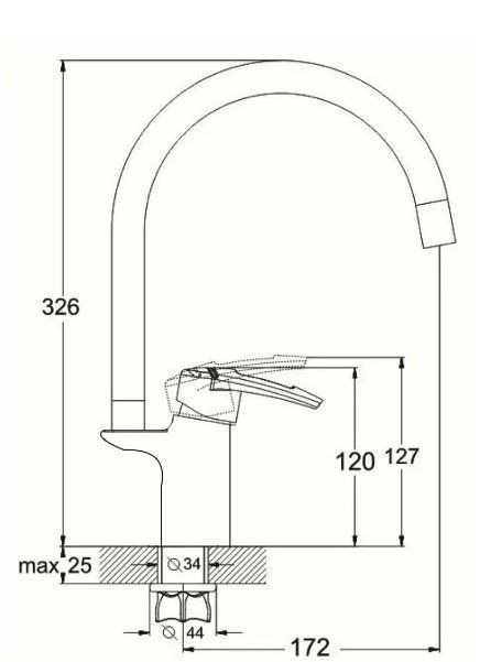 Высота излива, см