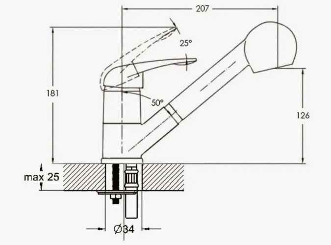 Высота излива, см