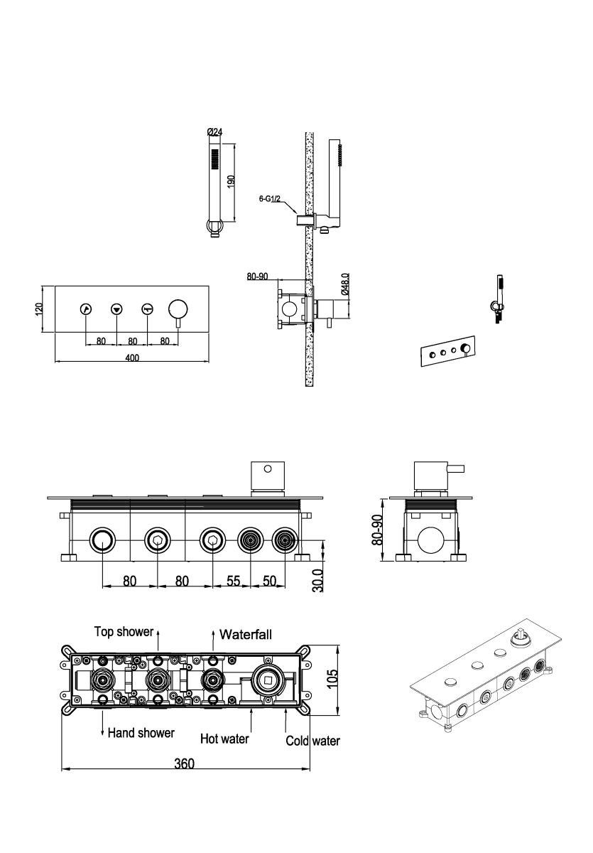 —Смеситель для душа Boheme Fusion 130-SYS-GM встраиваемый в стену графит