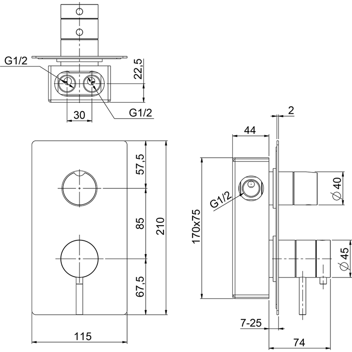 —Смеситель для душа Cisal Xion XI008104D1 встраиваемый в стену нержавеющая сталь с термостатом