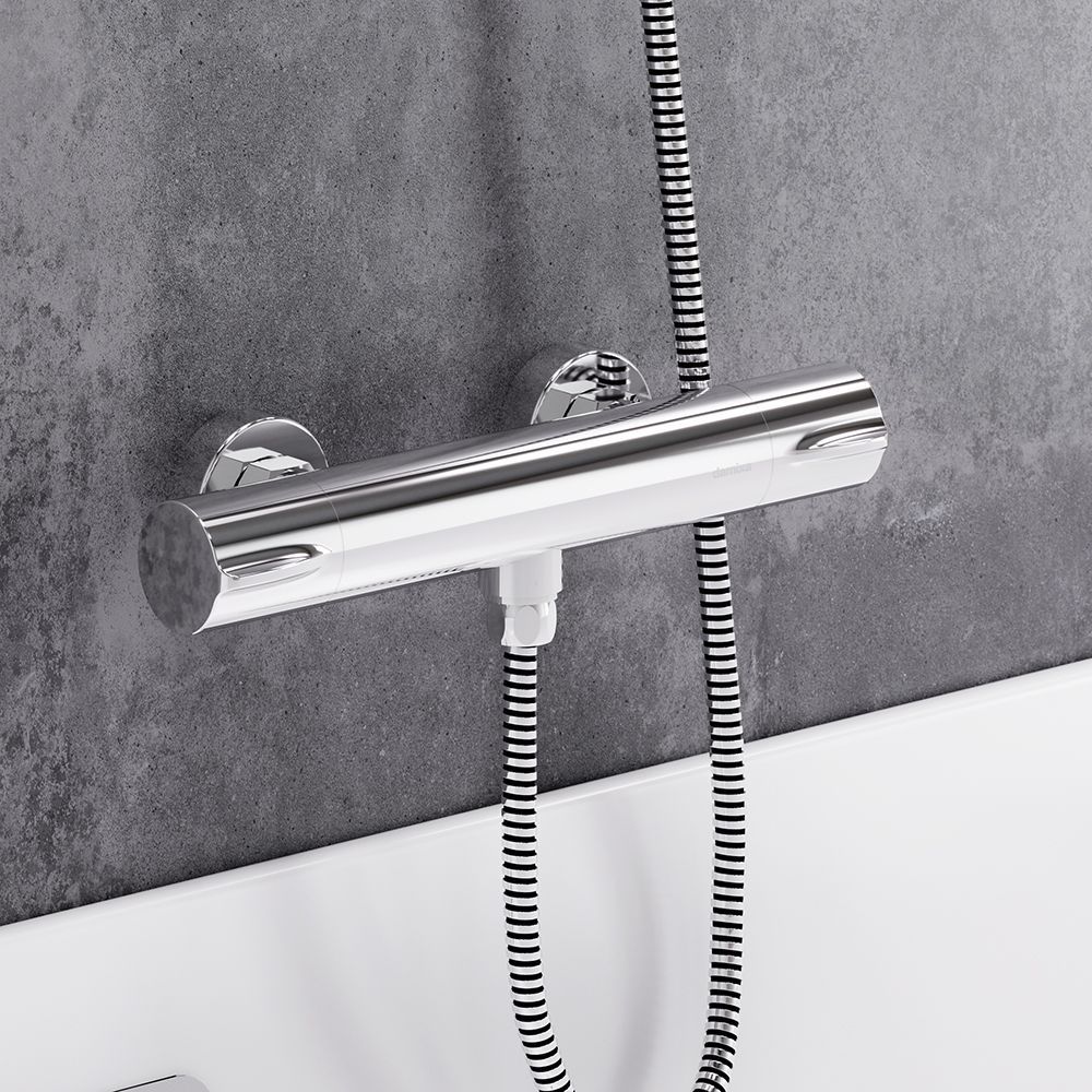 Максимальная безопасность: термостатический картридж 35 мм обеспечивает точную настройку температуры и напора воды. Специальная кнопка-предохранитель не позволяет случайно повысить температуру воды. Выставляйте комфортные для вас параметры легким поворотом правой ручки смесителя.