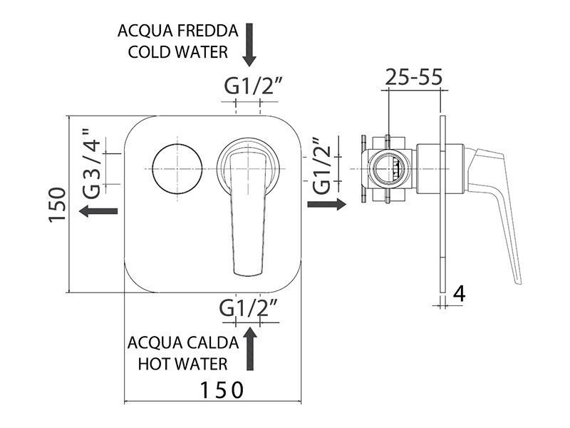 —Смеситель для душа Mamoli Spartaco 260600009021 встраиваемый в стену хром