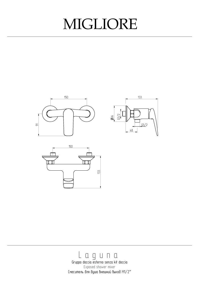 —Смеситель для душа Migliore LAGUNA 26084 настенный хром