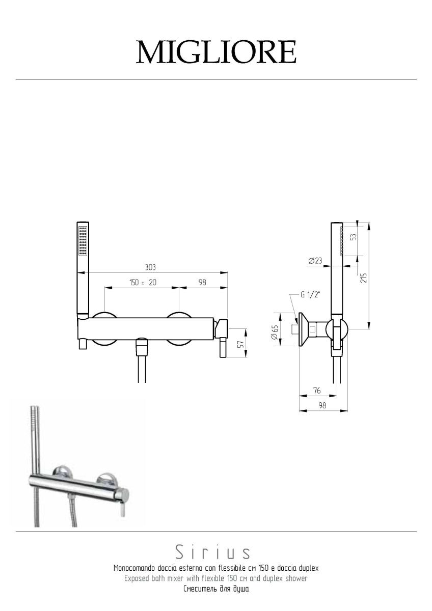 —Смеситель для душа Migliore SIRIUS 28180 настенный золото