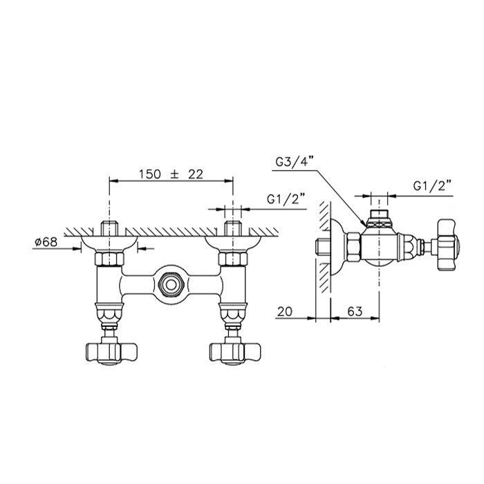 —Смеситель для душа Nicolazzi Dames Anglaises 1425BZ18 настенный бронза