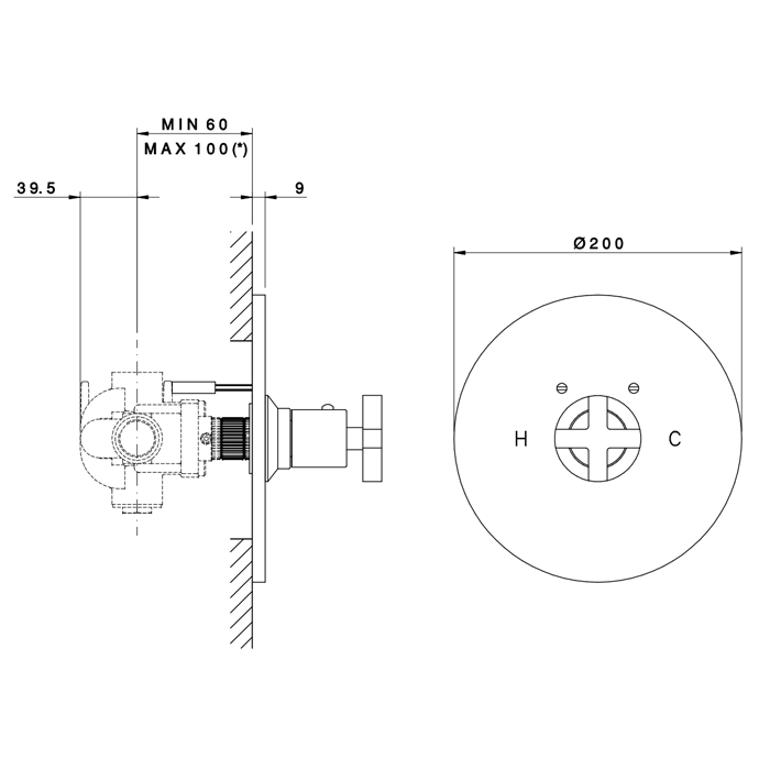 —Смеситель для душа Nicolazzi Termostatico 4914CR27 встраиваемый в стену хром (внешняя часть)