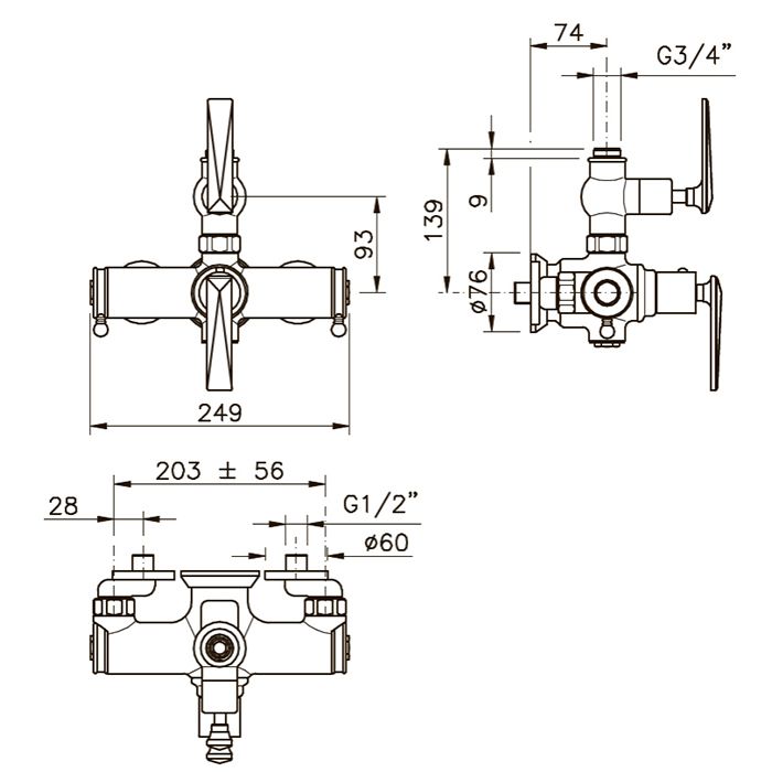 —Смеситель для душа Nicolazzi Termostatico 4917BZ69 настенный бронза с термостатом
