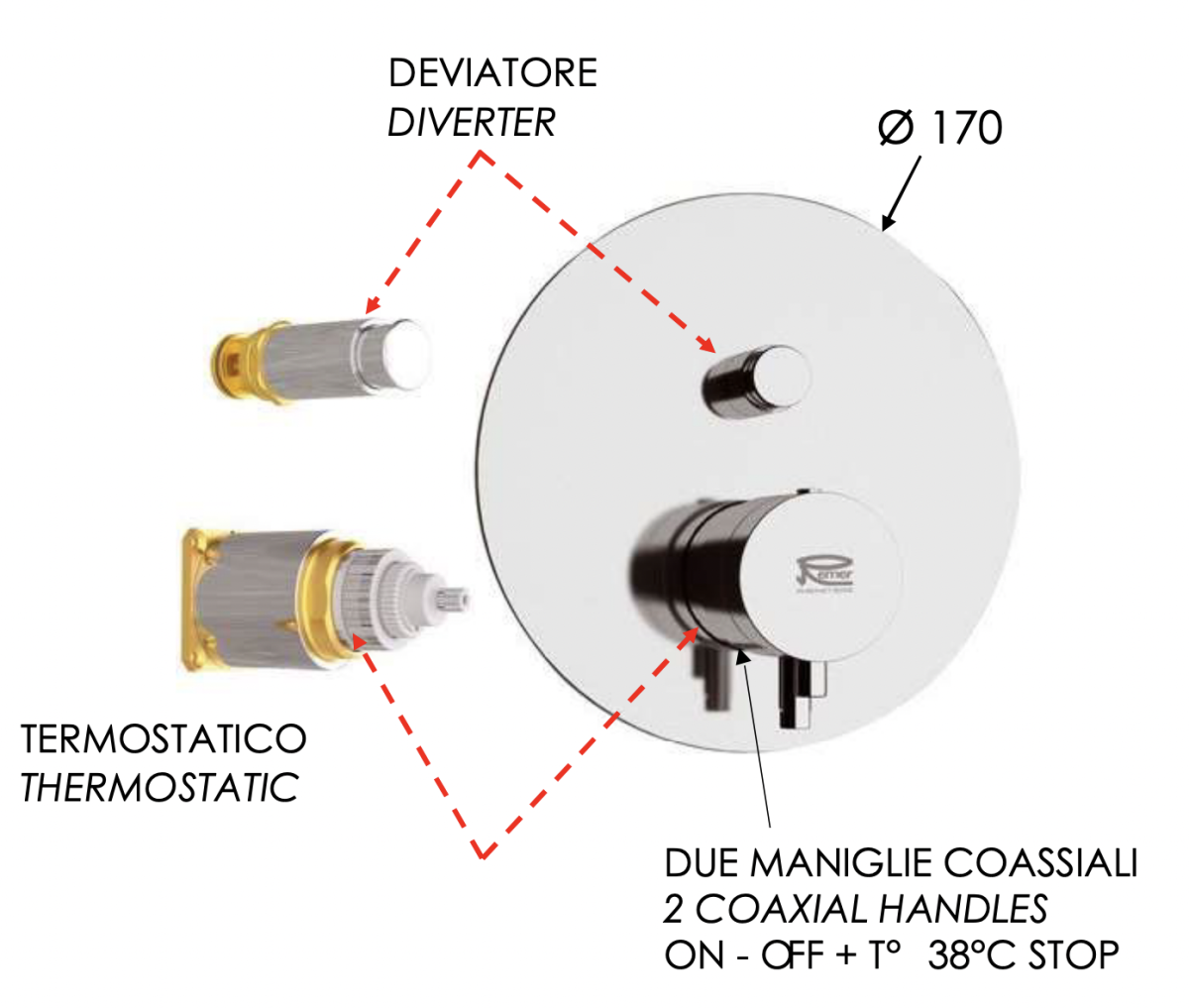 —Смеситель для душа Remer Elegance NT09KBXV встраиваемый в стену нержавеющая сталь с термостатом