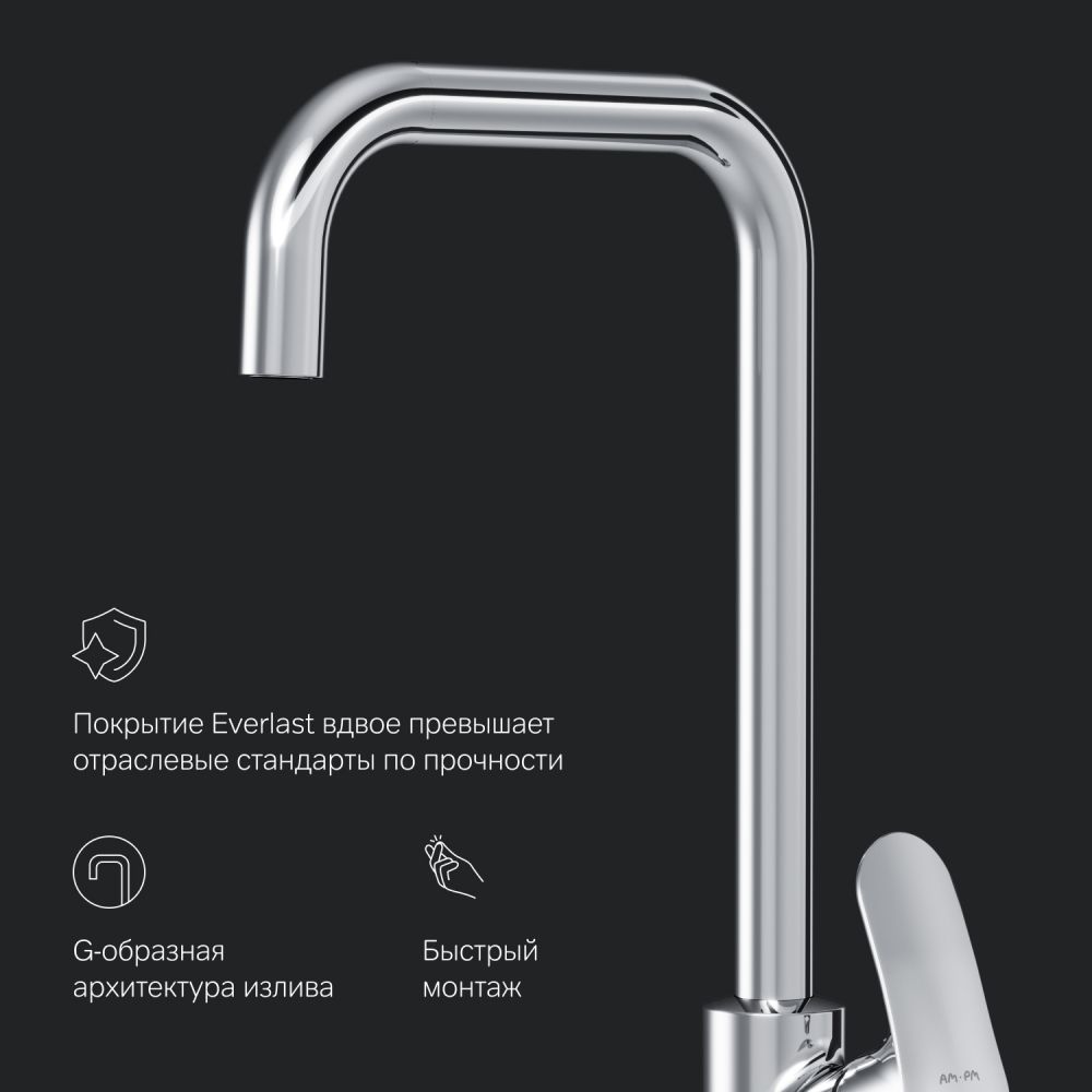 Эксклюзивная разработка: специально спроектированный для АМ.РМ керамический картридж SoftMotion 35 мм обеспечивает оптимальную регулировку температуры а также позволяет выдерживать любые перепады давления. Разработан с учетом ваших потребностей и особенностей различных пространств. Высокий излив смесителя Like идеально подойдет для любой раковины поможет вам с легкостью справится с такими задачами как наполнение больших емкостей.