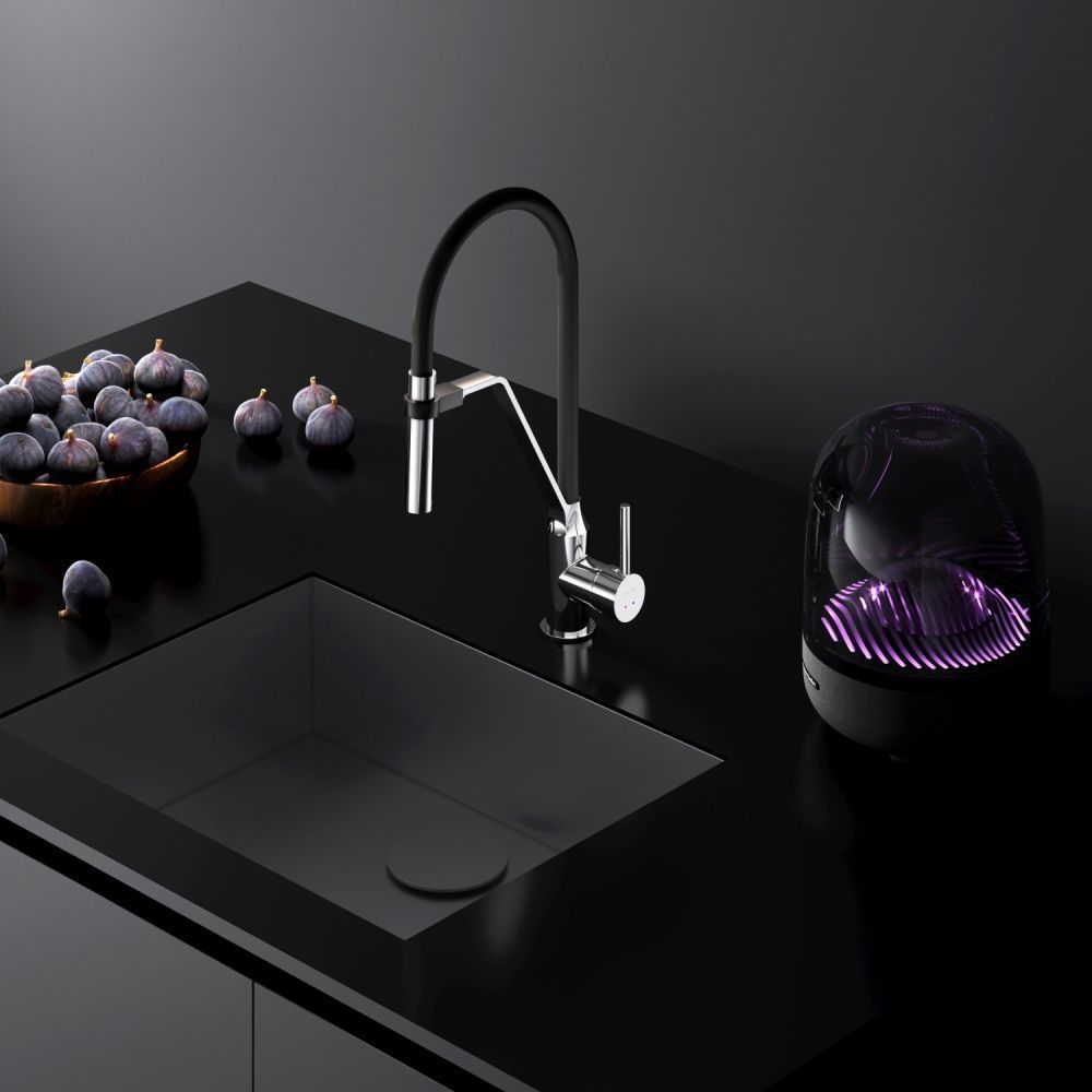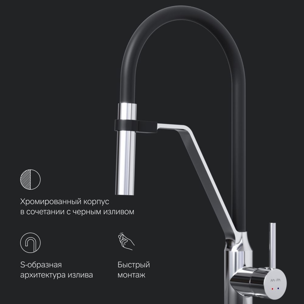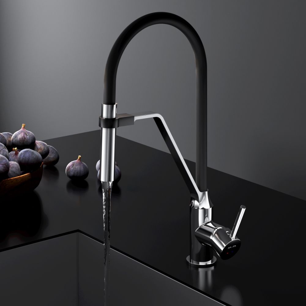 Гибкий излив значительно расширяет зону использования смесителя гарантирует легкий уход за мойкой и наполнение емкостей любой высоты. Излив изготовлен из термостойкого силикона. Силикон абсолютно безопасен при контакте с водой т.к. в составе силикона отсутствуют вредные для здоровья токсичные компоненты. Гладкий силиконовый излив устойчив к загрязнениям - легкий уход. Излив износостойкий и устойчив к перегибам.