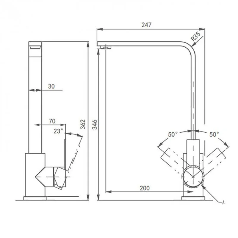 С входными шлангами (L600 мм, нержавеющая сталь, G1/2)