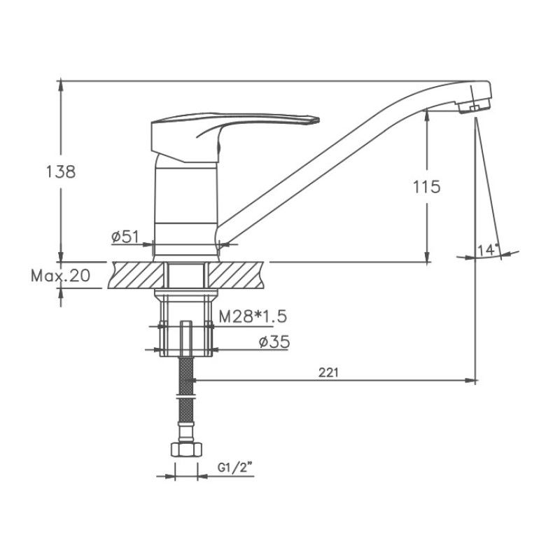 Высота излива, см
