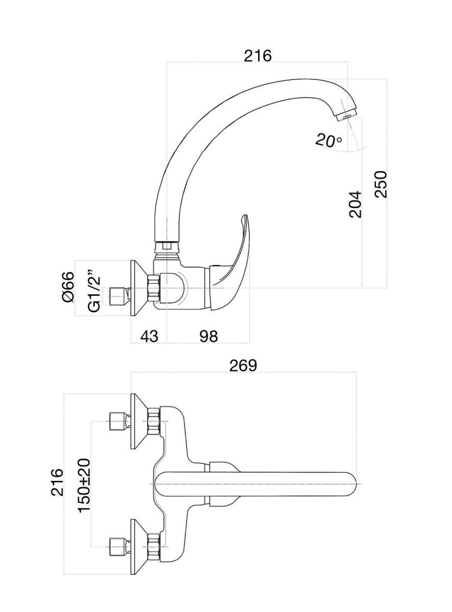 —Смеситель для кухни Fiore 43CR4260 настенный хром