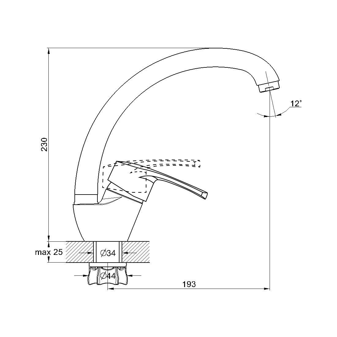 Высота излива, см
