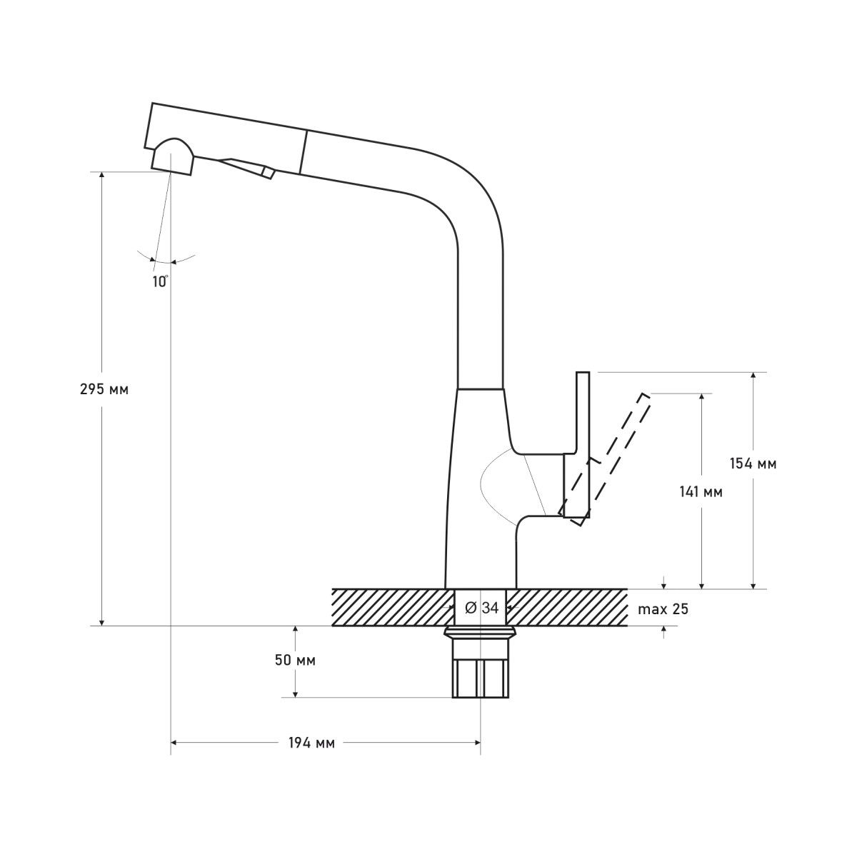 Высота излива, см