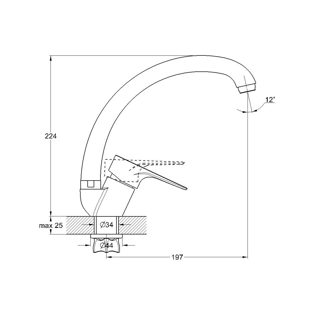 Высота излива, см
