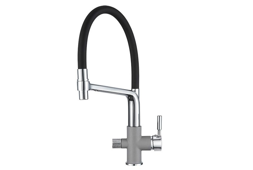 —Смеситель для кухни Granula 0075, АЛЮМИНИУМ на мойку серый