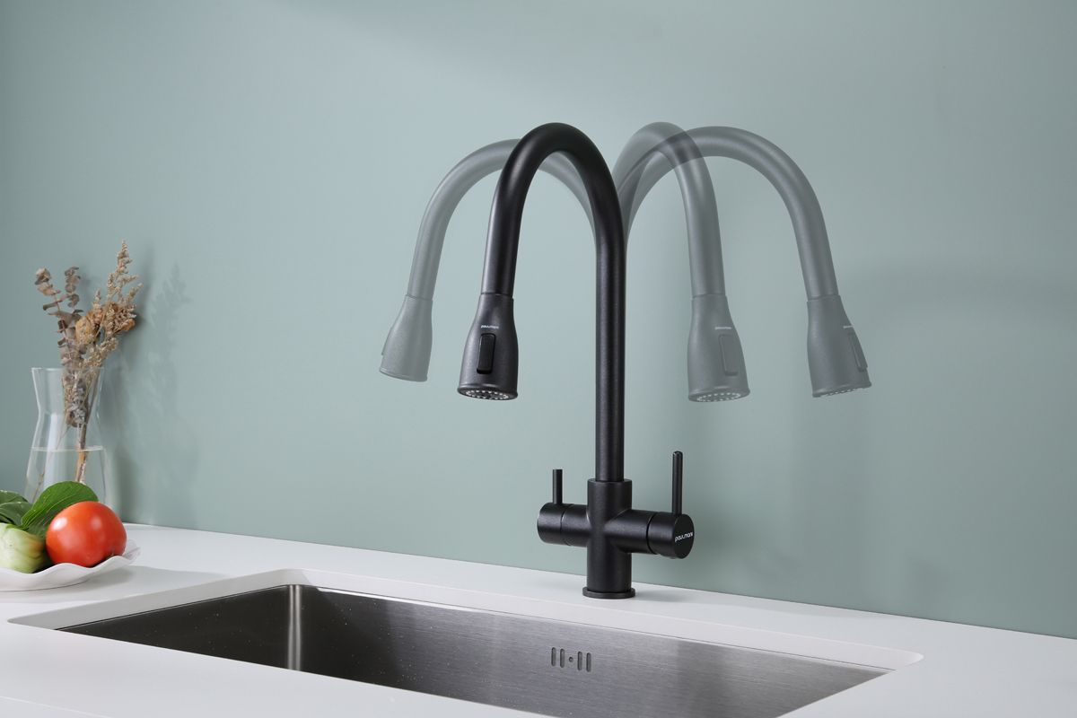 Высокий гибкий излив из селикона, вращающийся на 360 градусов, обеспечивает легкое мытьё и наполнение высокой посуды и ваз. Крепление излива с помощью магнитного держателя обеспечивает надёжную фиксацию.