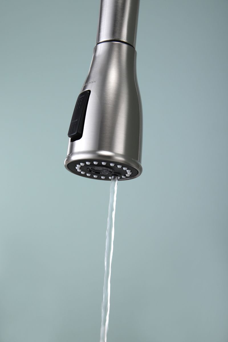 Высокий гибкий излив из селикона, вращающийся на 360 градусов, обеспечивает легкое мытьё и наполнение высокой посуды и ваз. Крепление излива с помощью магнитного держателя обеспечивает надёжную фиксацию.