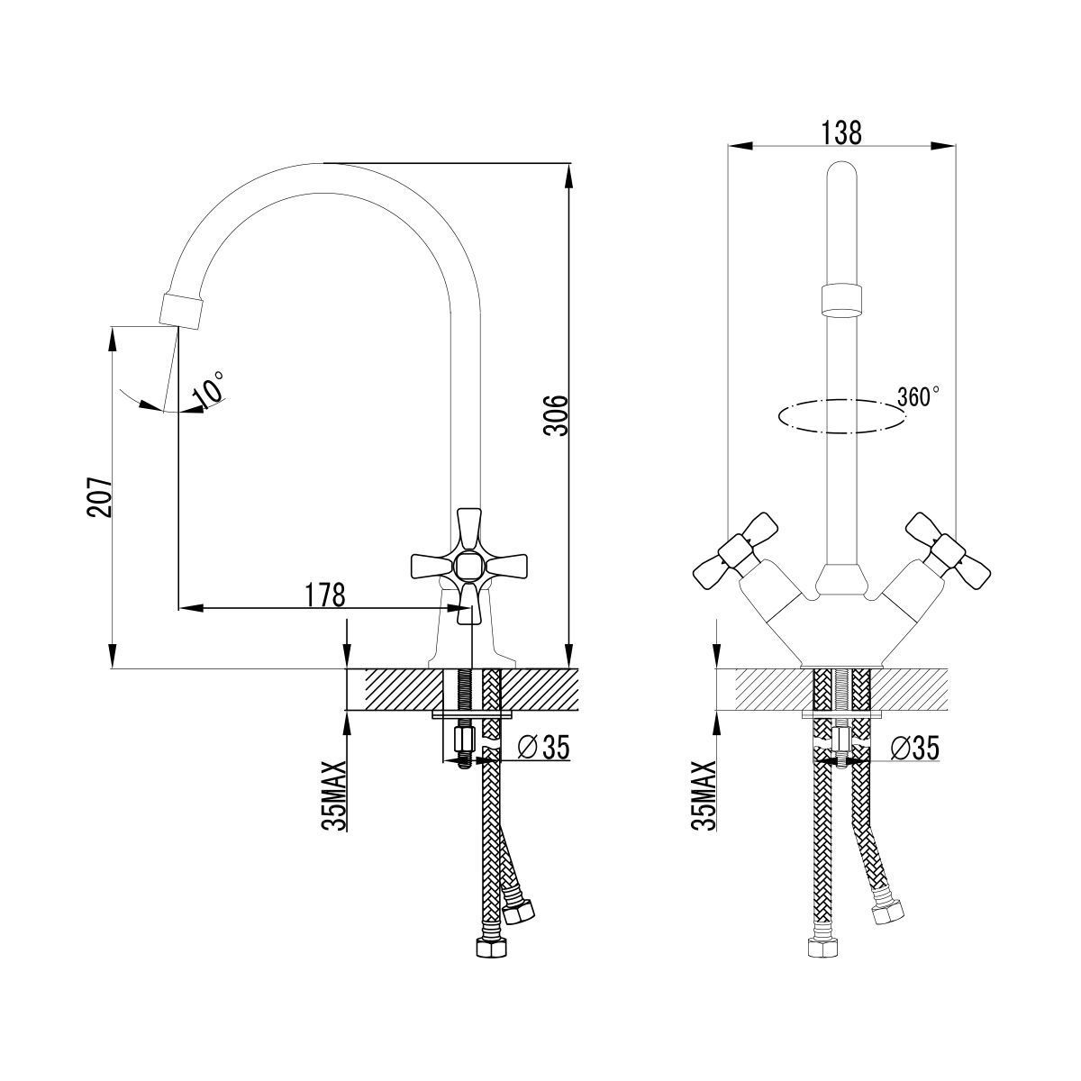 BENEFIT - "два плюса в ваших руках". Смесители этой серии идут в 2-х ручковом крестообразном исполнении. Комплектация:  Аэратор Neoperl,  Cascade,  , Кран-буксы с керамическими пластинами (угол поворота - 180 градусов) , Гибкая подводка 1/2" 35 см , Металлические рукоятки