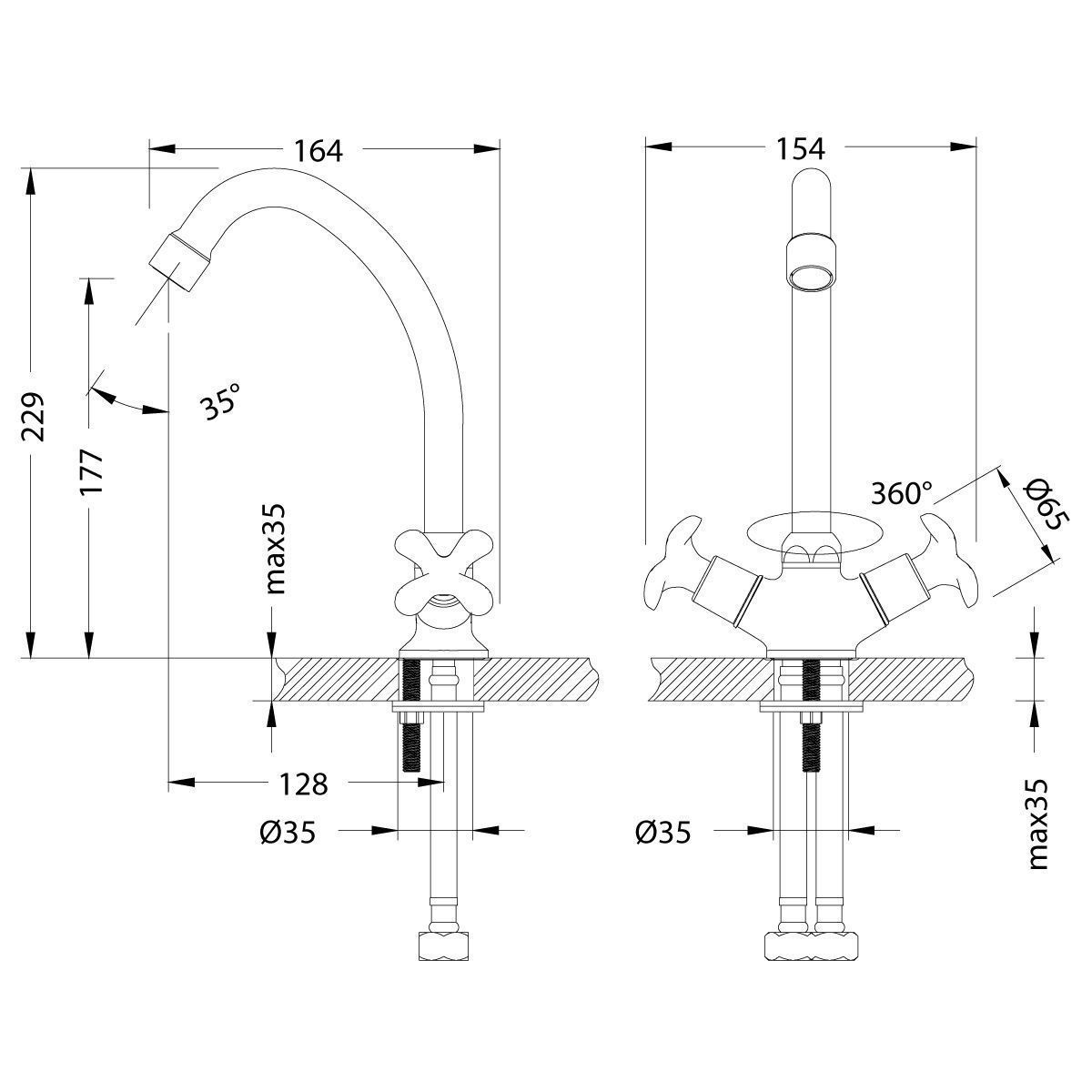 Серия смесителей FLORA. Комплектация:  Аэратор ,  Кран-буксы с керамическими пластинами (угол поворота – 90 градусов) , Гибкая подводка 1/2" 50 см , Металлические рукоятки